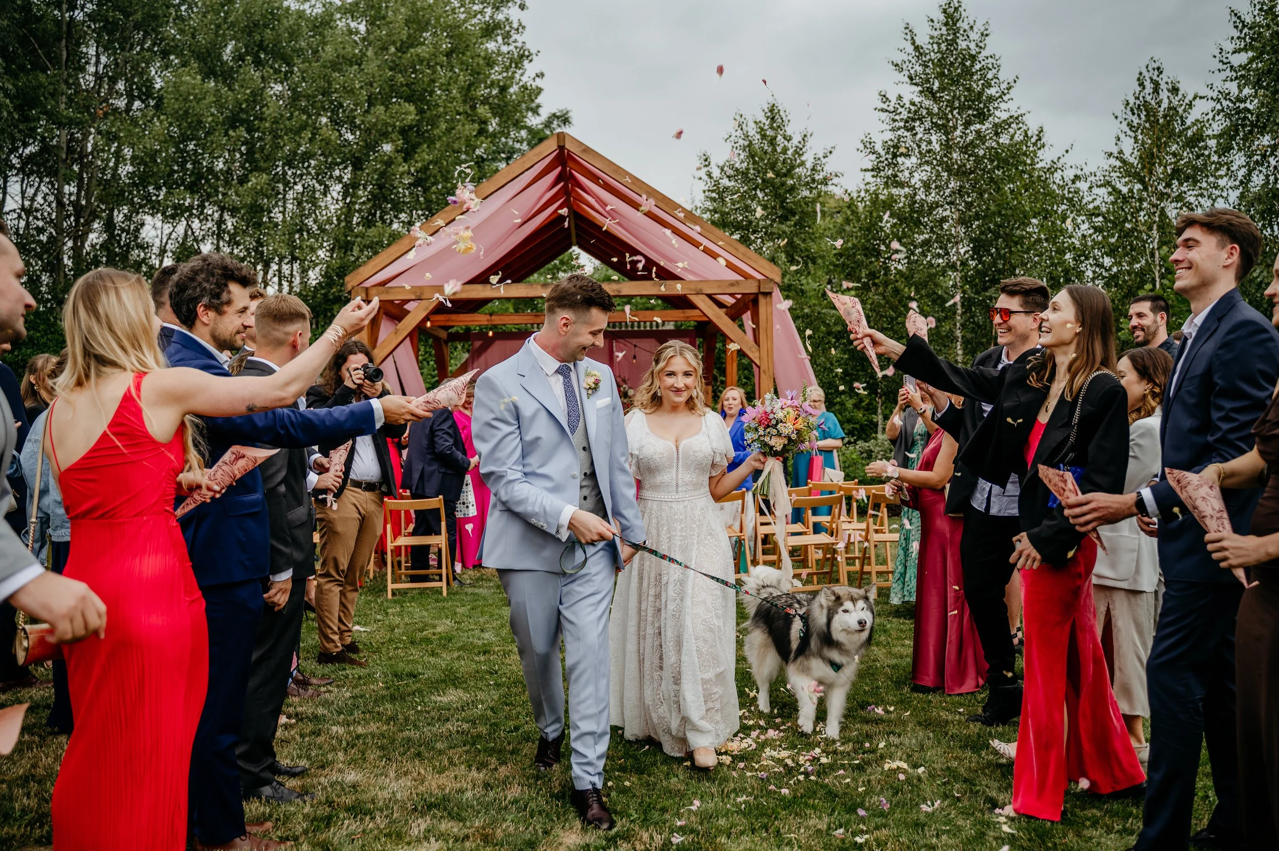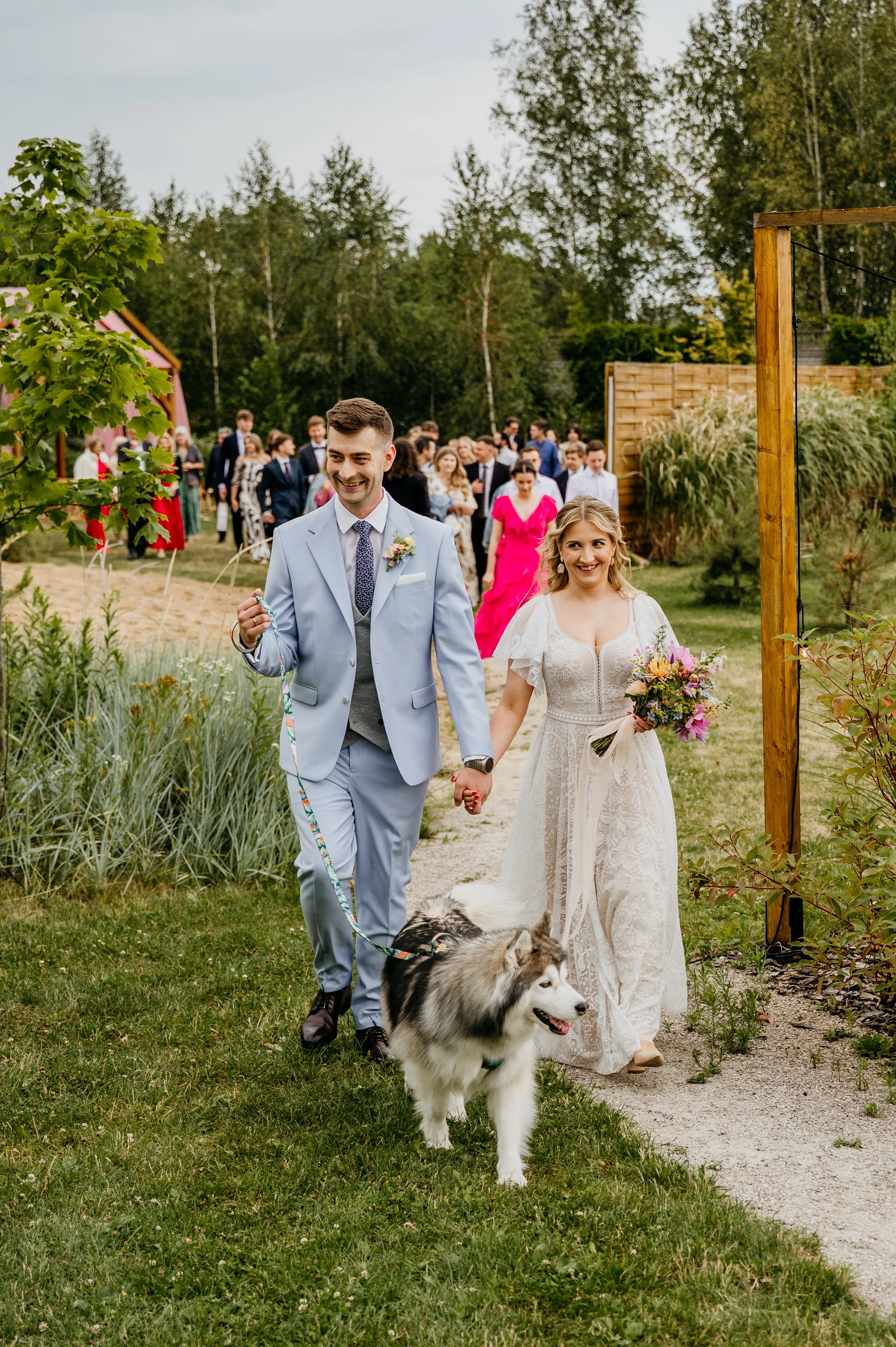 Paulina i Piotrek wzięli pieska, zaprosili najlepszych ziomeczków i powiedzieli sobie „tak” — bez spiny, napięcia czy stresu, w zieleni i spokoju, delektując się każdą prostą chwilą, śmiechem i drobnymi gestami, które mówiły więcej niż słowa. Czego chcieć więcej? Stodoła na Urzeczu x oni x piesek.